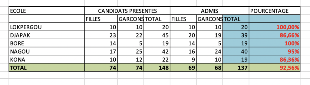 Pas de vacances estivales pour eux alors : écoliers et collégiens sont allés à l’école tout l’été et ont passé leurs examens, CEPD* et Brevet des collèges, fin août . Nous n’avons que les résultats du CEPD et… ils sont bons 😁. Ils sont même très bons : alors qu’au Togo la moyenne nationale est de 78% nous affichons près de 93% de réussite dans les villages que nous sponsorisons. 93% ! 🤗 Respect, les profs !